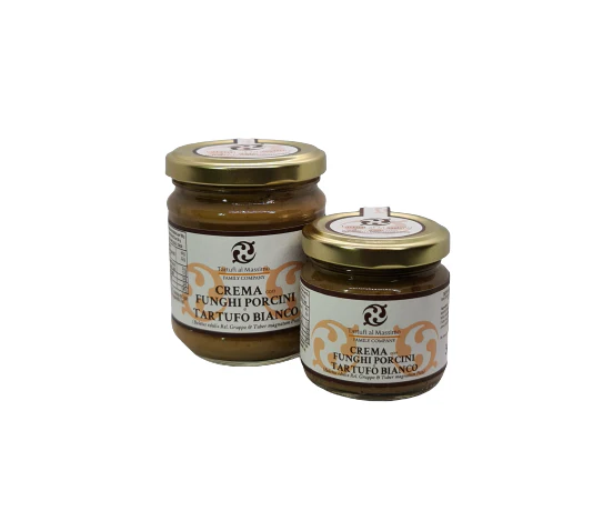 Questa salsa fa incontrare il dolce porcino autunnale con il nobile Tartufo Bianco (Tuber Magnatum Pico) che ne impreziosisce ed intensifica la fragranza.